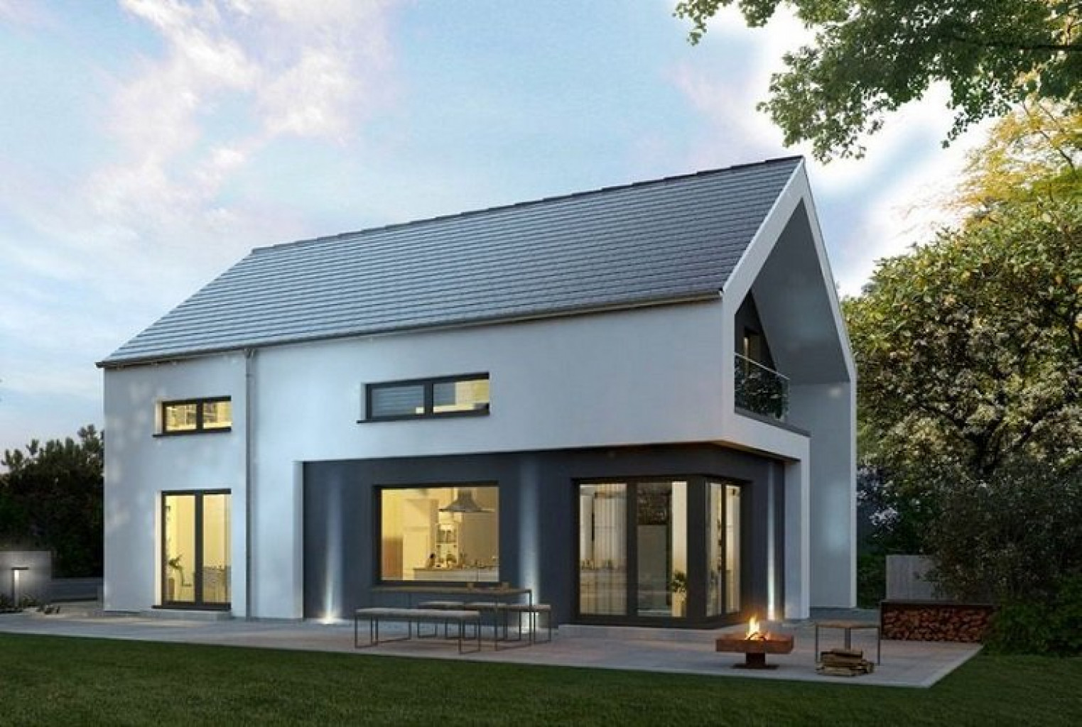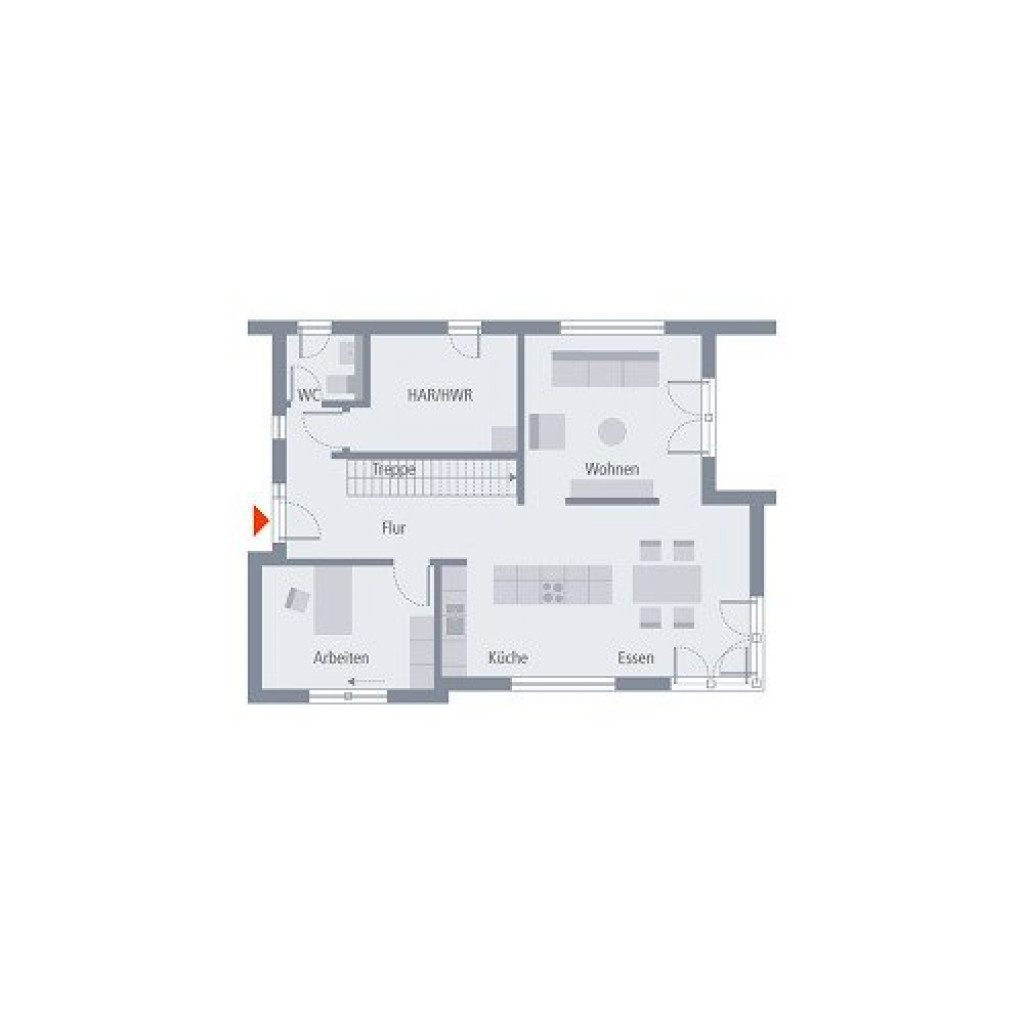 Klassisch und stilvoll präsentiert sich das 2-geschossige Einfamilienhaus Design 13. Unter dem Satteldach vereinen sich moderne Architektur und höchster Wohnkomfort. Im Entrée trennt die offene Treppe WC und HWR räumlich vom restlichen Wohnbereich ab. Auch das Büro findet hier seinen Platz. Der offene und helle Koch- und Wohnbereich wird durch ein freistehendes Wandelement gekonnt unterbrochen. Vom Wohn- und Esszimmer geht es zur großflächigen Eckterrasse. Im Obergeschoss ist die Elternsuite mit Bad und Ankleide dank kluger Raumaufteilung geschickt von den Kinderzimmern mit eigenem Dusch-WC abgegrenzt. Der Dachvorsprung an der Giebelseite setzt nicht nur gestalterische Akzente, sondern sorgt auch für einen geschützten Aufenthalt im Freien. OKAL-Spezial: Großes Sitzfenster im Wohnbereich. In Buche, Esche, Eiche oder Nuss gratis on top.
