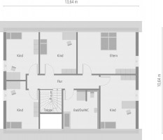 Das Einfamilien-Satteldachhaus verteilt sich großzügig auf 1 ½ Etagen. Ein halbes Untergeschoss und ein volles Obergeschoss bieten für Familien mit bis zu vier Kindern reichlich Raum zur individuellen Entfaltung. Schon der offen gestaltete Wohn-, Koch- und Essbereich deutet auf die großzügigen Raumverhältnisse hin. In der oberen Etage warten das 25 m² große Eltern- und vier weitere Zimmer auf Sie. Im Erdgeschoss befindet sich die zusätzliche Einliegerwohnung. Mit eigenem Zugang und voller Ausstattung bietet sie vielfältige Nutzungsmöglichkeiten: sich verändernde Familiensituationen, Ferienwohnung, Business oder, oder ... Der Gestaltungsfreiheit sind keine Grenzen gesetzt.