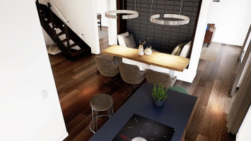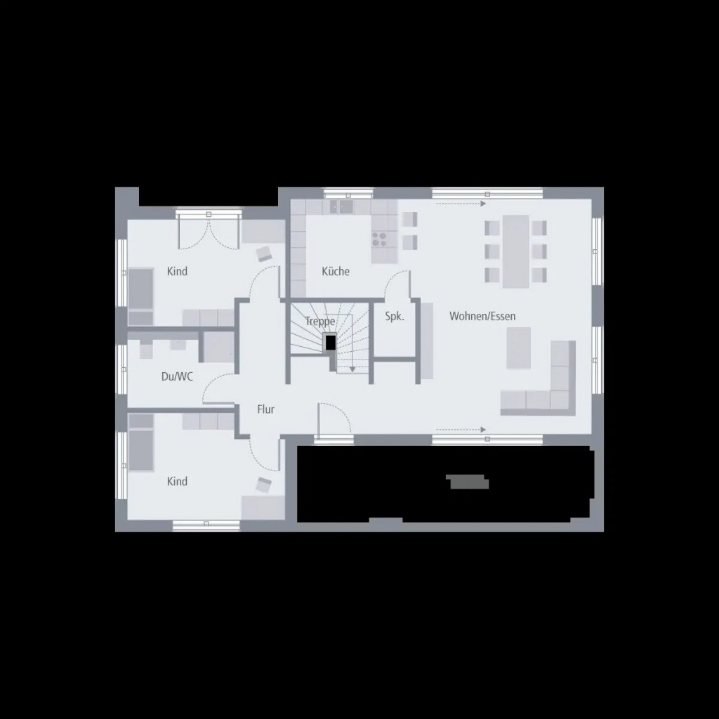 Unser Designhaus im Berg ist für die besonders anspruchsvolle Umgebung konzipiert und fügt sich auf elegante und zugleich durchdachte Weise ideal in hügeliges Gelände ein. Das Einfamilienhaus erstreckt sich über zwei Etagen und ist bereits von außen ein echter Blickfang: Auf der dem Berg abgewandten Seite befindet sich im Untergeschoss eine Garage sowie - unmittelbar darüber - ein überdachter Balkon, der die Fassade nicht nur optisch aufwertet, sondern auch für einen wohnlichen Mehrwert sorgt: Hier können die künftigen Eigenheimbesitzer vor fremden Blicken geschützt entspannen. Doch auch unter dem Satteldach hat das Designhaus auf einer Wohnfläche von rund 222 m² viel zu bieten. Im Kellergeschoss, das zugleich auch attraktiven und klimatisch immer angenehmen Wohnraum bietet, befindet sich das Reich der Eltern. Diese verfügen über ein Schlafzimmer mit Ankleide sowie ein Badezimmer. Auf der gegenüberliegenden Seite des zweigeteilten Kellers befinden sich Garage und Nutzräume. Mittelpunkt des Erdgeschosses ist der mehr als 45 m² große Wohn-Ess-Koch-Bereich mit einer sich unmittelbar anschließenden Speisekammer und direktem Zugang zum Balkon, zwei Kinderzimmern und einem Duschbad.